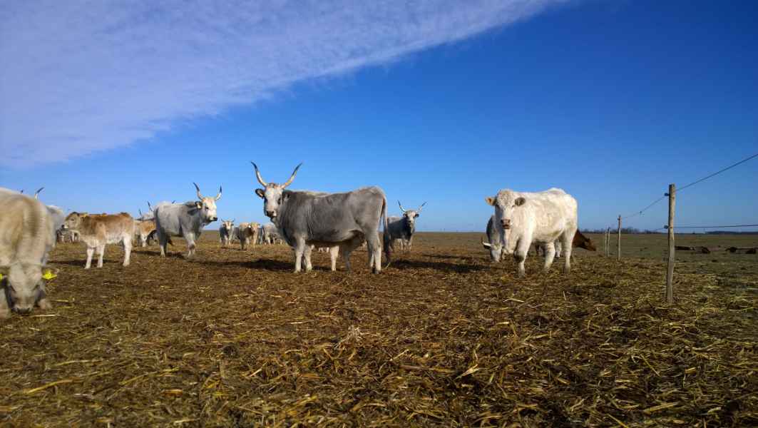 Állományunkban jelenleg 85 tehén található, fajták tekintetében dominál a magyar szürke, valamint annak Charolais és Blonde d'Aquitaine fajtájú húshasznú keresztezései. A takarmányozás gerincét tavasztól őszig a tápanyagokban gazdag, friss legelő adja. A legeltetéses gazdálkodás a lehető legtermészetesebb módja az állattartásnak, az állatok jó közérzetéhez és a kiváló húsminőség eléréséhez elengedhetetlen. A későősszel és télen „ad libitum“ etetett szálas takarmányt teljes egészében a gazdaságunkban állítjuk elő, a kiegészítő tápokat, premixeket, nyalósót megbízható kereskedőktől vásároljuk.